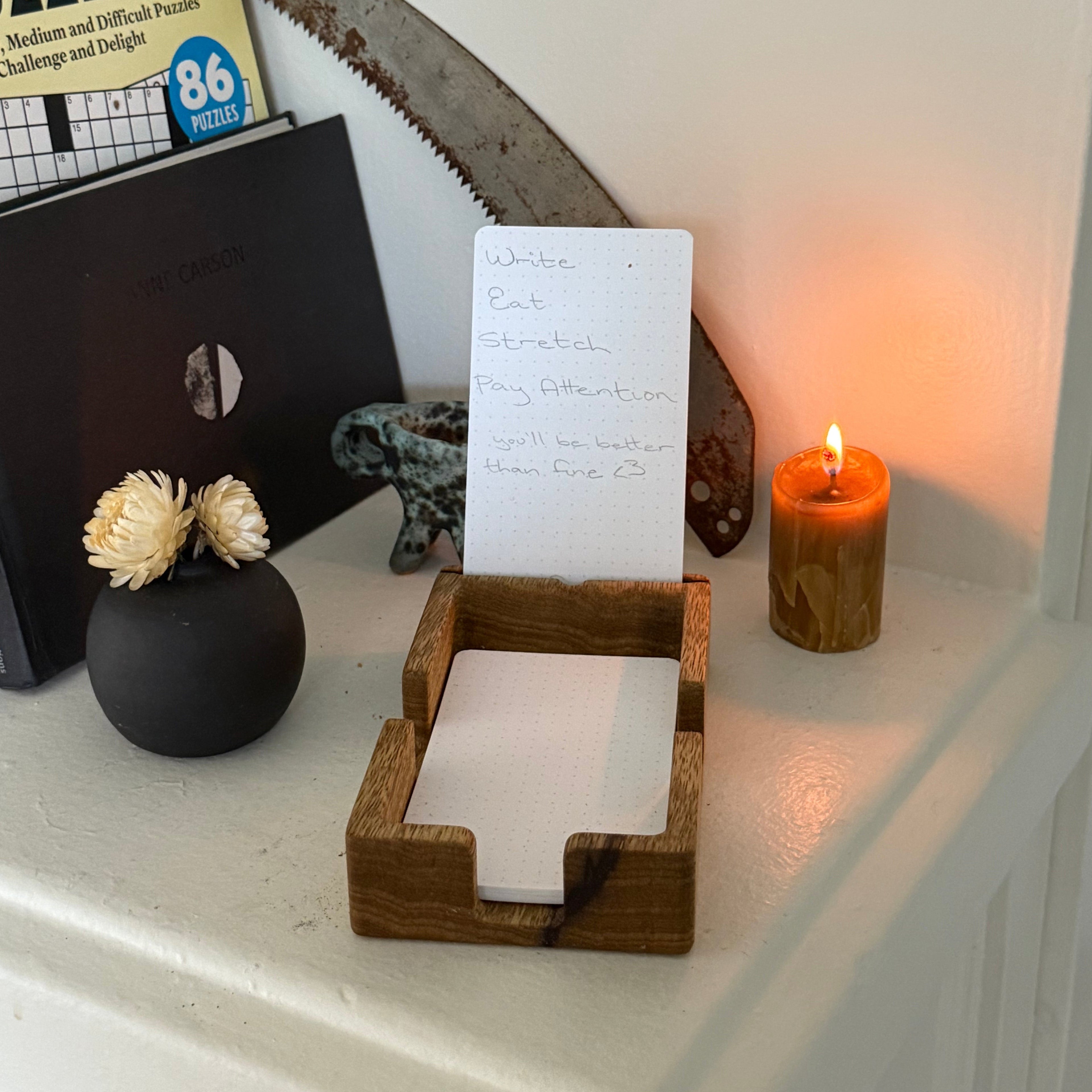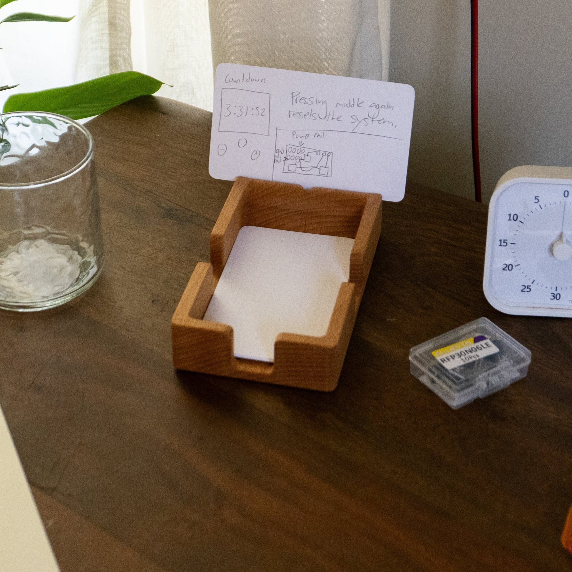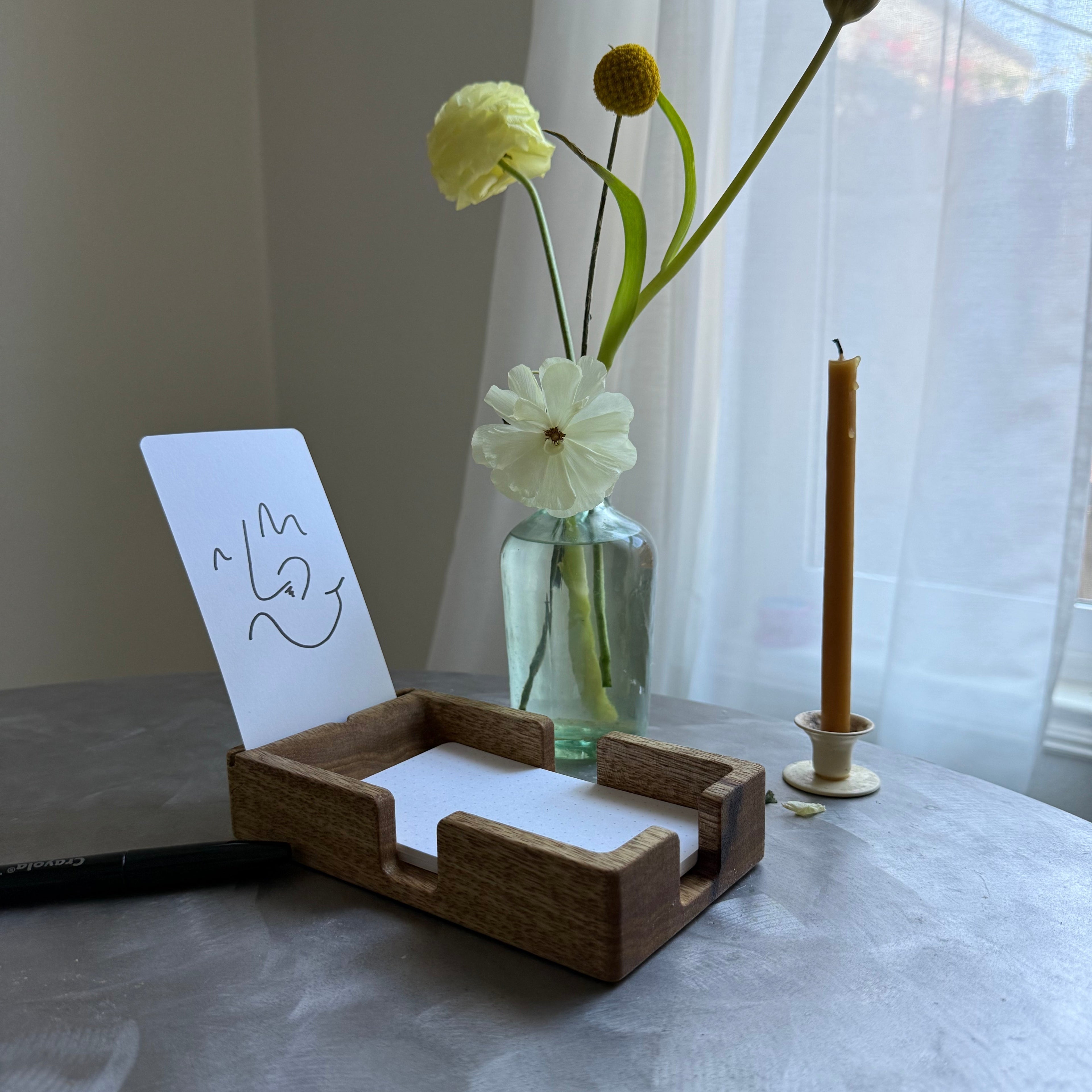 A simple notecard has found many uses in my daily life. From quick sketches to lists and reminders, it has become my go-to way of jotting something down throughout the day. I designed this one to be simple, versatile, and enduring. It is milled from a single block of hardwood and finished by hand.